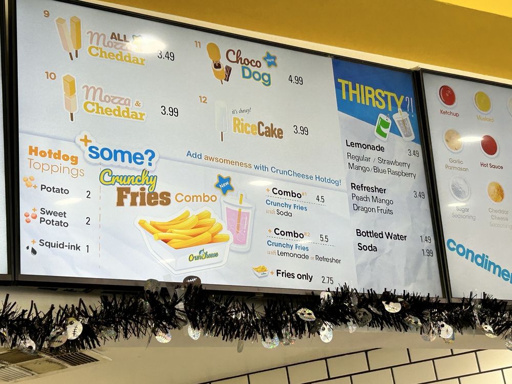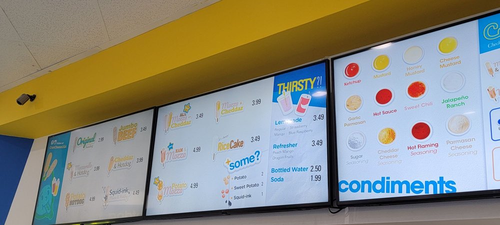 Introducing the menu at Cruncheese - Las Vegas, a trendy and casual eatery offering a unique twist on corn dogs. Located at 6572 N Decatur Blvd, this restaurant provides delivery, takeout, and reservations. With wheelchair accessibility and a variety of parking options, it caters to all diners. The menu features deep-fried cheese and hotdogs, with options like mozzarella, cheddar, and Korean-inspired varieties. Customers rave about the cheese pull factor and diverse condiment choices. The friendly staff make the experience enjoyable, ensuring quick service and a relaxing atmosphere. Overall, Cruncheese - Las Vegas offers a creative dining experience with delectable dishes that are worth the visit.